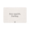 Meet Bon Appétit, Darling, an elegant pet food mat in soft light gray with refined lettering. This non-slip mat keeps your floors tidy while adding a subtle, sophisticated touch to your space.